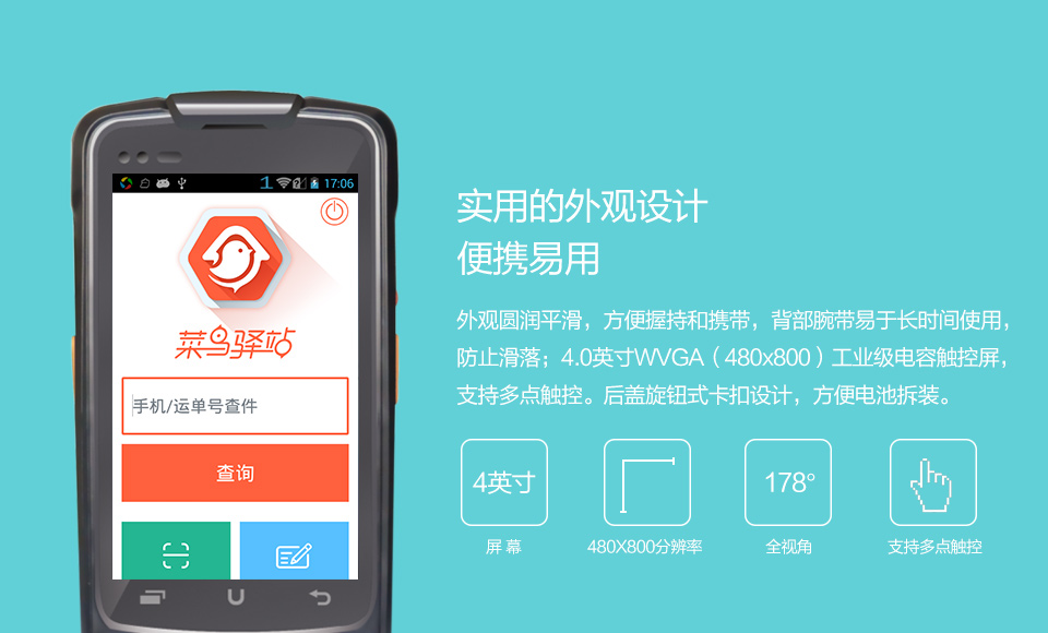 2、移动仓储:菜鸟驿站会不定期向大区中转仓汇集揽收到的快递包裹,同时也接收到大区中转仓派送过来的需要配送的区域快递。通过采用数字化手持智能终端,菜鸟驿站实现庞大规模的快递包裹管理和临时性仓储,避免了传统的纸笔和人脑记忆的错漏等问题出现,提升快递派送和揽收效率。