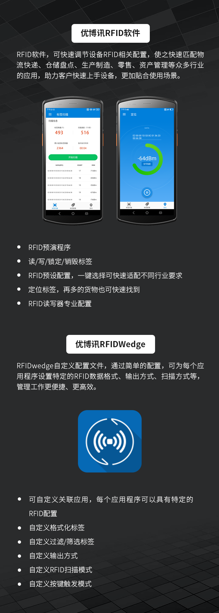 其实RFID无线电射频识别技术不仅可以应用在“天上”,在地上也同样可以帮助我们把货物、商品管理得井井有条。优博讯RFID超高频智能终端以及RFID管理软件,支持每秒识读数十个甚至上百个RFID标签,让数据采集效率爆炸式提高,可广泛应用于仓库管理、资产盘点、零售盘点、服装批发、珠宝管理等多种行业场景,助力企业加强信息化管理,提升工作效率,有效提高效益。