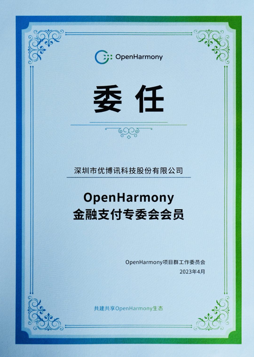 OpenHarmony金融专委会是由金融机构、金融从业者、学者等组成的专业性组织,旨在促进金融服务行业的发展和规范性,本次当选OpenHarmony金融专委会会员,再次彰显了优博讯在金融支付领域的研发实力。