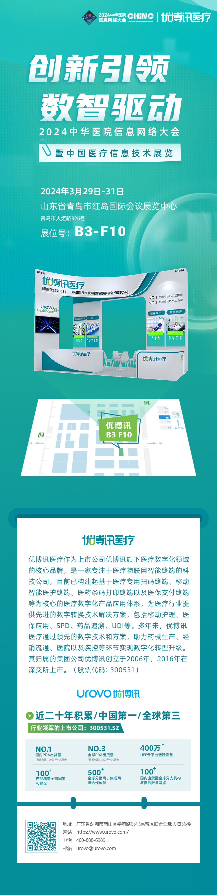 ✔优博讯医疗B3-F10展位号,中国医疗信息技术领域行业盛会等您相聚!